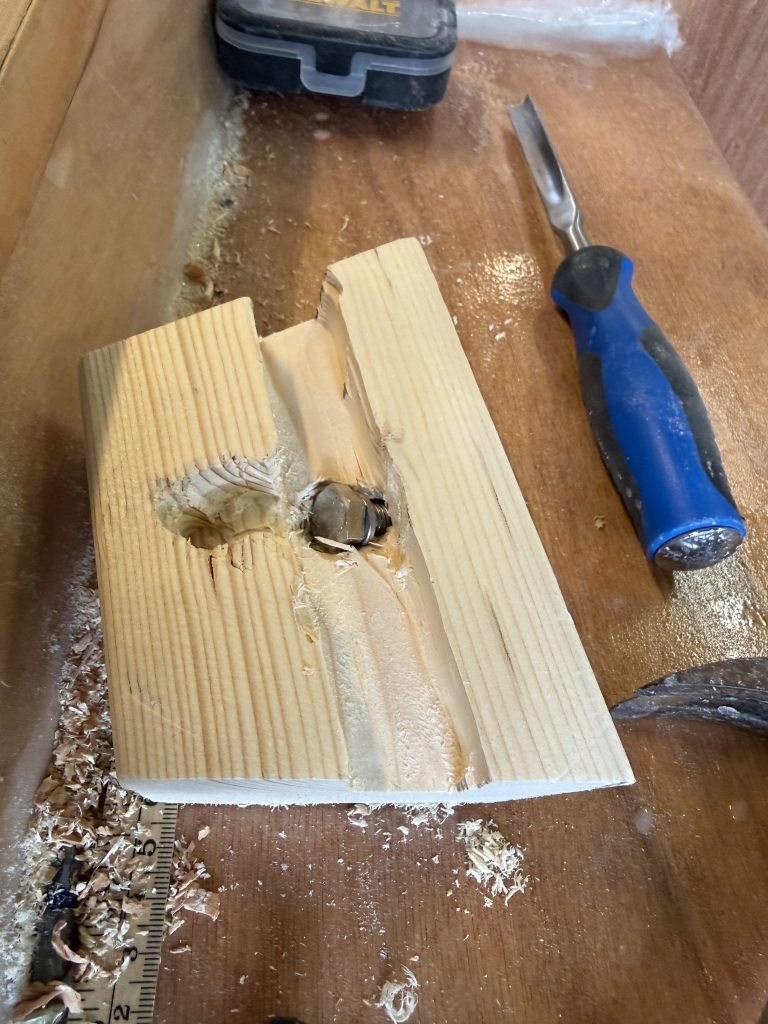 Strevde veldig med å få til festene for åre-utrigger. Bruksanvisning var feil, men fant til slutt et bilde på nettet som jeg kunne bruke til mal. Måtte gjøre mange forsøk før det ble bra – fresen var god å bruke og god å finne. Vinkler alle veier.