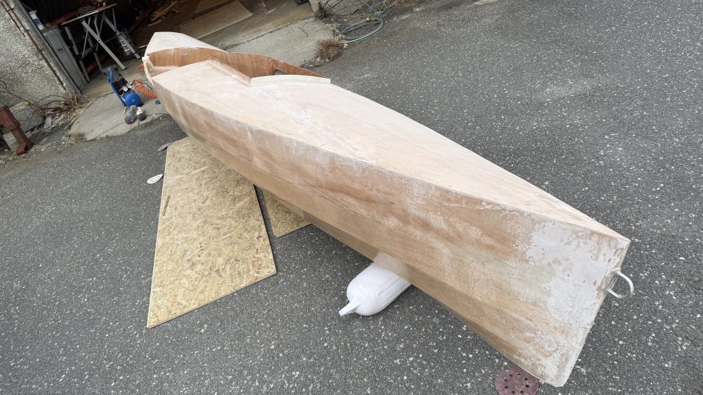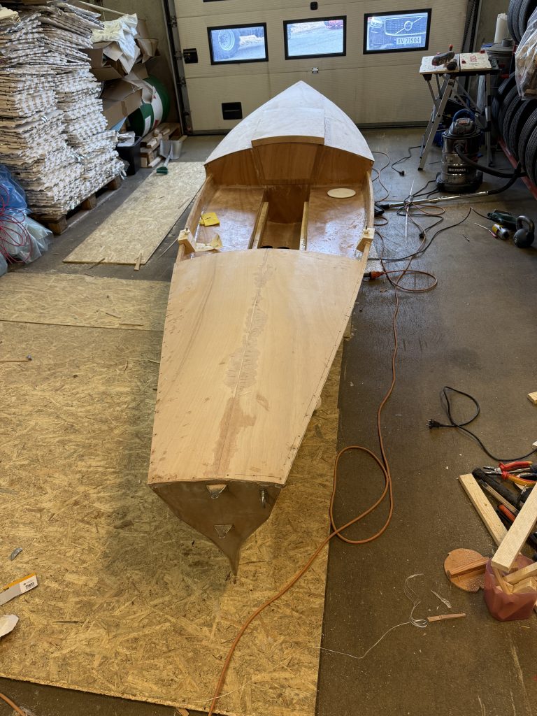 Har båten hjemme og bruker egen trang garasje. Begynte nedpussing- blir litt av en jobb!