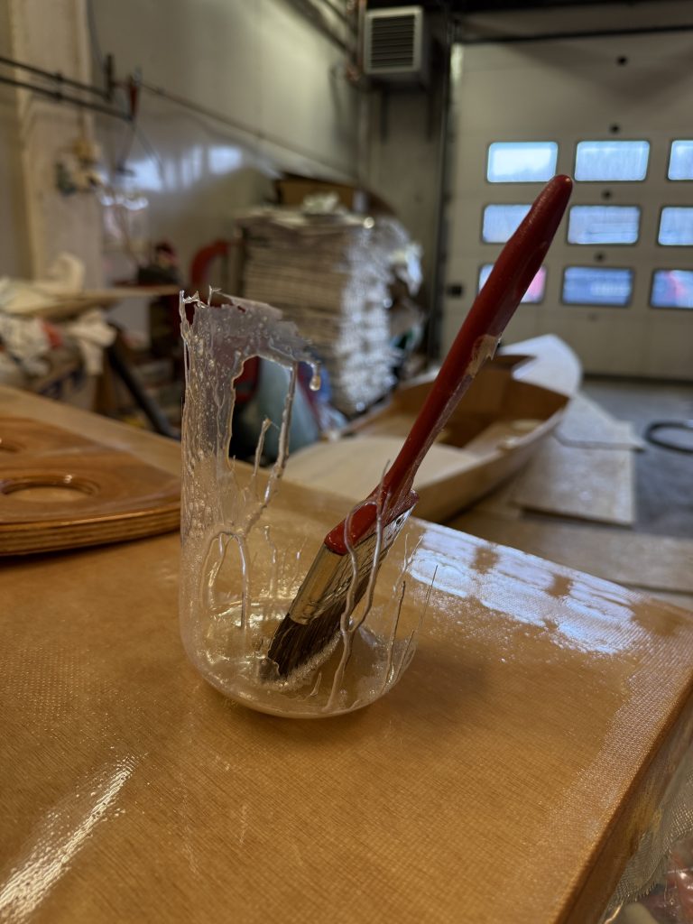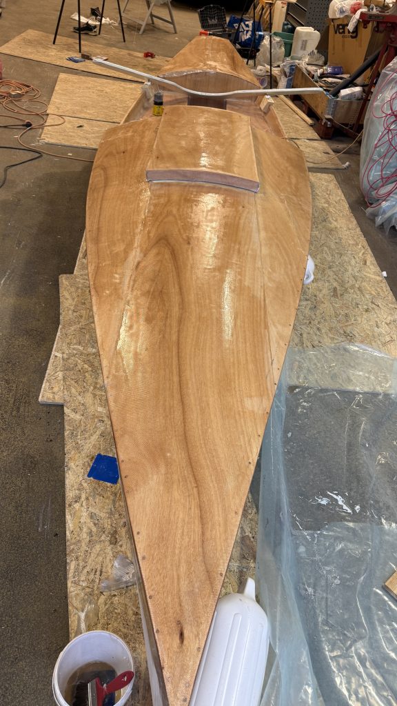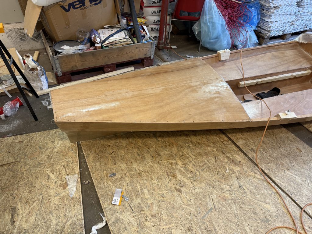 La duk på dekkene og påførte 2 strøk epoxy – må ha ett strøk til i morgen.